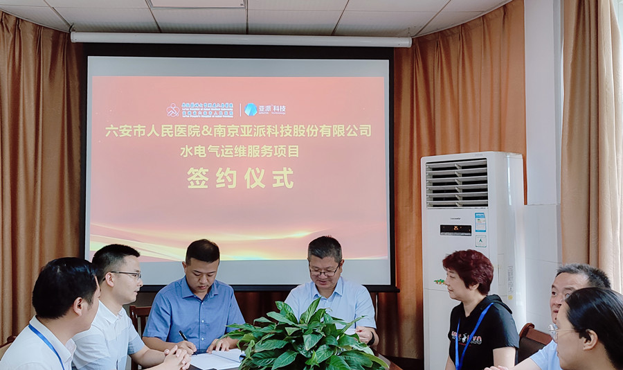 近日,亚派科技与六安市人民医院的水电气运维服务项目在该院举行签约仪式。签约仪式由亚派科技相关人员与医院相关领导共同出席。双方将借助各自的优势,通过强强联手,共同推进绿色医院后勤管理的建设和运维服务。