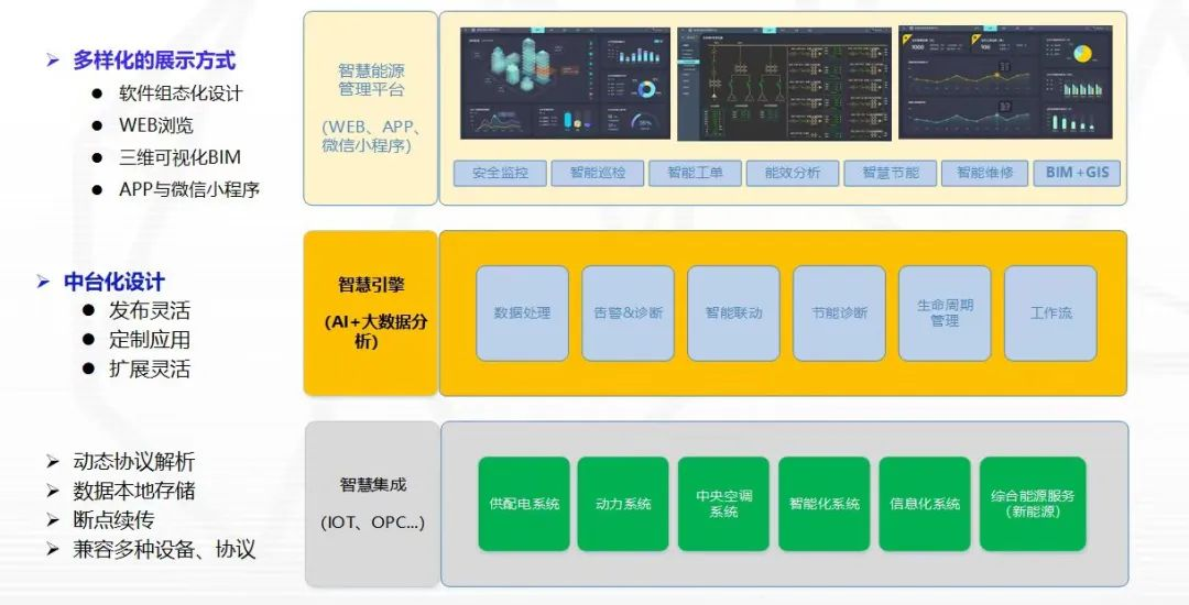 对此,亚派科技工业厂房能源管理解决方案,可有效降低能源成本,提高效率,实现工业厂房可视化和可控化,降低管理风险,提高安全性。亚派科技工业厂房能源管理系统是以实现建筑节能及设备一体化管控为目标,通过具备智能集成、能源管理、节能管控、智能诊断与智能运维服务等功能的软件系统为基础,将智能配电柜、智能动力控制柜、智能照明控制柜、建筑内供配电系统及第三方系统融合,在保障设备运行安全、用电安全的基础上,提供建筑能源审计、节能管控、故障诊断与预警及机电设备运维服务,实现建筑智慧节能、绿色低碳运营的智慧能效服务方案。