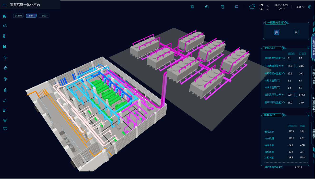 中央空调节能优化控制系统:基于系统整体全局优化控制,利用校核的系统模型实时寻找机房运行的最佳效率点,实现空调的全局优化控制。节能率比一线节能率高5%-15%,以动力站房的整个系统能效最高为目标,综合考虑各设备之间的耦合关系与相互影响。