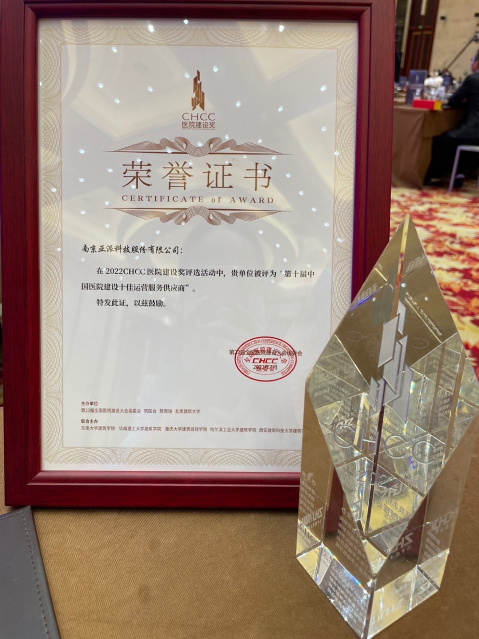 日前,由第二十三届全国医院建设大会组委会、筑医台、筑而瑞、北京建筑大学联合东南大学建筑学院、华南理工大学建筑学院、重庆大学建筑城规学院、哈尔滨工业大学建筑学院、西安建筑科技大学建筑学院举办的2022CHCC医院建设奖(原“中国医院建设奖”)评审结果揭晓。经过专家评审和线上投票环节,南京亚派科技股份有限公司荣获“第十届中国医院建设十佳供应商”称号。